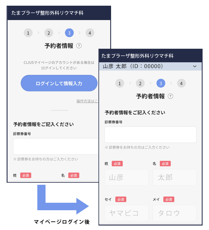 アカウントをご作成いただくと、WEB予約にて氏名などの患者情報入力を省略できます。