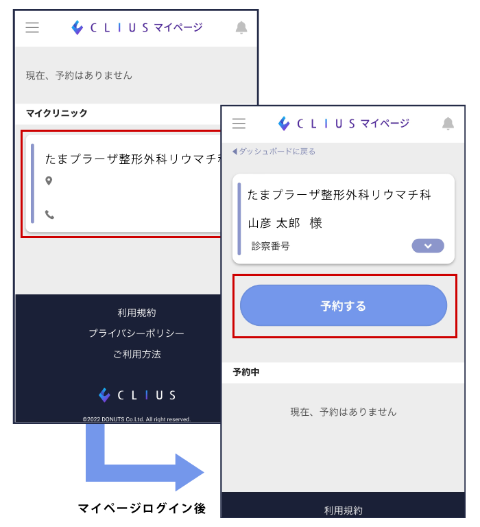 患者様のマイページにてマイクリニックを登録した場合、以下の操作が可能です。